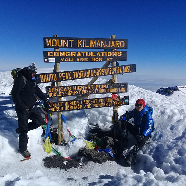 Very early in the morning (around midnight), we begin our push to the summit. This is the most mentally and physically challenging portion of the trek. The wind and cold at this elevation and time of day can be extreme. We ascend in the darkness for several hours while taking frequent, but short breaks near Stella Point (18,900 ft) you will be rewarded with the most magnificent sunrise you are ever likely to see coming over Mawenzi Peak. Finally, we arrive at Uhuru Peak- the highest point on Mount Kilimanjaro and the continent of Africa.