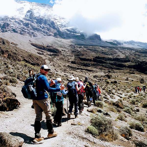 We rise in the morning with a hearty breakfast then a descent into the ravine below the much dreaded Great Baranco Wall, a steep 900 ft wall that doesn’t require many skills to navigate. on climbing the wall, we traverse a chain of hills and valleys that lead to a sharp descent into the Karanga valley. Not. much is expected on this day as it is a brief day meant for acclimatization by climbing again to the Karanga Camp located just above the Karanga Valley on Mount Kilimanjaro.